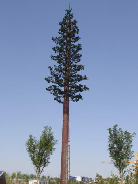 仿生樹,又叫仿生塔、仿生通訊塔,屬于通信發(fā)射塔技術領域。是讓通信鐵塔與周圍的自然環(huán)境相協(xié)調,有效地解決了風景區(qū)等地建站難的問題,其優(yōu)點是保持了原有單管塔的所有優(yōu)點,在其外形上作了重大的突破、改進,以自然生長的松樹,樟樹等為仿真的造型樣本,設計素描圖和電腦效果圖,制訂雕塑和噴涂工藝程序,對單管塔仿真?zhèn)窝b,使人們察覺不到塔的存在,把它融入了周圍的自然環(huán)境中。