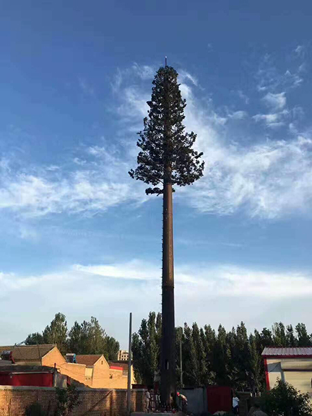 仿生樹 ,又叫仿生塔、仿生通訊塔,屬于通信發(fā)射塔技術領域。是讓通信鐵塔與周圍的自然環(huán)境相協(xié)調(diào),有效地解決了風景區(qū)等地建站難的問題,其優(yōu)點是保持了原有單管塔的所有優(yōu)點,在其外形上作了重大的突破、改進,以自然生長的松樹,樟樹等為仿真的造型樣本,設計素描圖和電腦效果圖,制訂雕塑和噴涂工藝程序,對單管塔仿真?zhèn)窝b,使人們察覺不到塔的存在,把它融入了周圍的自然環(huán)境中。