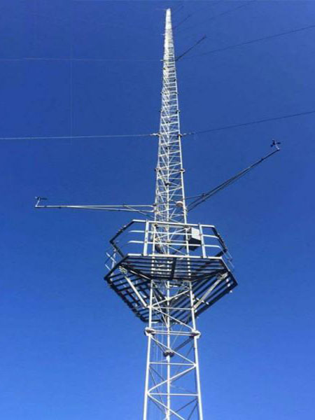 中波塔又稱電視信號發(fā)射塔俗稱電視塔。采集塔柱采用外法蘭盤連接,螺栓受拉,不易破壞,鋼絞線加固。塔柱正三角