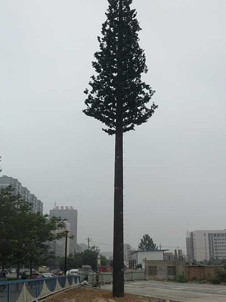 仿生樹(shù),又叫仿生塔、仿生通訊塔,屬于通信發(fā)射塔技術(shù)領(lǐng)域。是讓通信鐵塔與周?chē)淖匀画h(huán)境相協(xié)調(diào),有效地解決了風(fēng)景區(qū)等地建站難的問(wèn)題,其優(yōu)點(diǎn)是保持了原有單管塔的所有優(yōu)點(diǎn),在其外形上作了重大的突破、改進(jìn),以自然生長(zhǎng)的松樹(shù),樟樹(shù)等為仿真的造型樣本,設(shè)計(jì)素描圖和電腦效果圖,制訂雕塑和噴涂工藝程序,對(duì)單管塔仿真?zhèn)窝b,使人們察覺(jué)不到塔的存在,把它融入了周?chē)淖匀画h(huán)境中。