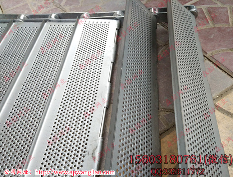 翻板式輸送帶的運輸上和一般鏈板輸送帶沒有區(qū)別,也非常適用于各種小顆粒或者大件箱包類產(chǎn)品的輸送,這種輸送帶的網(wǎng)板采用的是一邊折彎穿進(jìn)串桿,這樣就可以和合頁一樣來回翻動,不過在生產(chǎn)時一定要注意每塊網(wǎng)板要搭在下一塊網(wǎng)板的串桿位置,這樣才能確保承載能力。在網(wǎng)帶運行到輸送機(jī)的下面時網(wǎng)板會全部張開垂直向下,這樣有利于輸送帶上殘留的物料清除干凈,同時也方便輸送網(wǎng)帶的日常清洗。翻板輸送帶網(wǎng)板的末端還可以折彎處理,這樣應(yīng)用 在一些帶有爬坡的輸送機(jī)上可以當(dāng)作隔板使用。